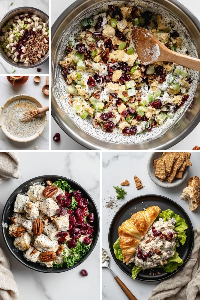 - Combine and chill: Pour the dressing over the chicken mixture and fold gently to coat. Let it rest in the fridge for 30 minutes before serving.