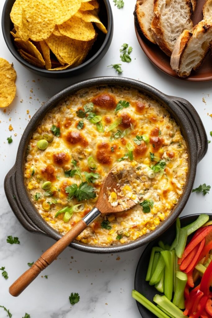 Serve this hot dip with sturdy tortilla chips, corn chips, or toasted baguette slices. It also pairs incredibly well with fresh vegetable sticks like celery and bell peppers for a crisp contrast.